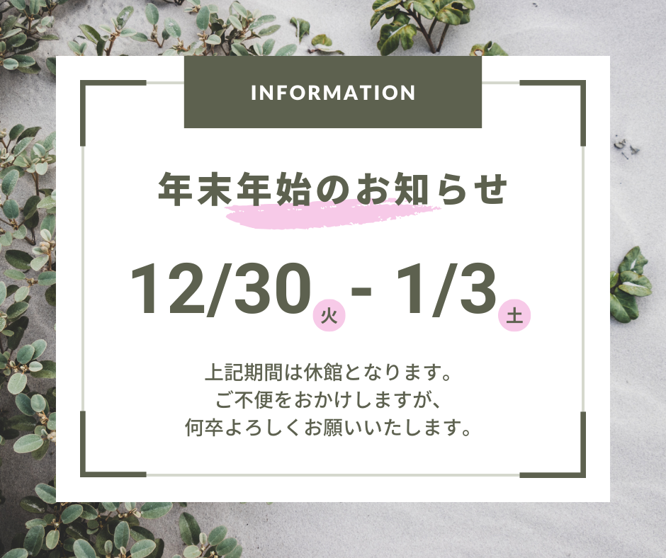 年始は1月4日(日)9:00~21:00で営業いたします。